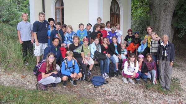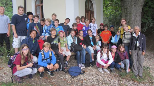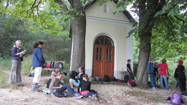 Nach dem Motto :"Das Wandern ist des Müllers Lust" marschierten die 2b und 2c am 6. Sept. bei herrlichem Herbstwanderwetter zur Lourdeskapelle in der Nähe von Enzersfeld. Die steilen Hänge des Hohlweges motivierten viele Schüler diese mit Schwung zu erklimmen. Zurück ging es über die Stettner Heide nach Seebarn zum Sportplatz und schließlich zur Hauptschule.